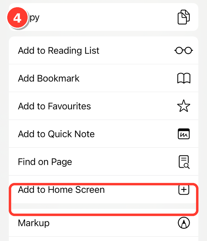 Use Safari. The “Add to Home Screen” option won’t show up the same way in other iPhone browsers.
